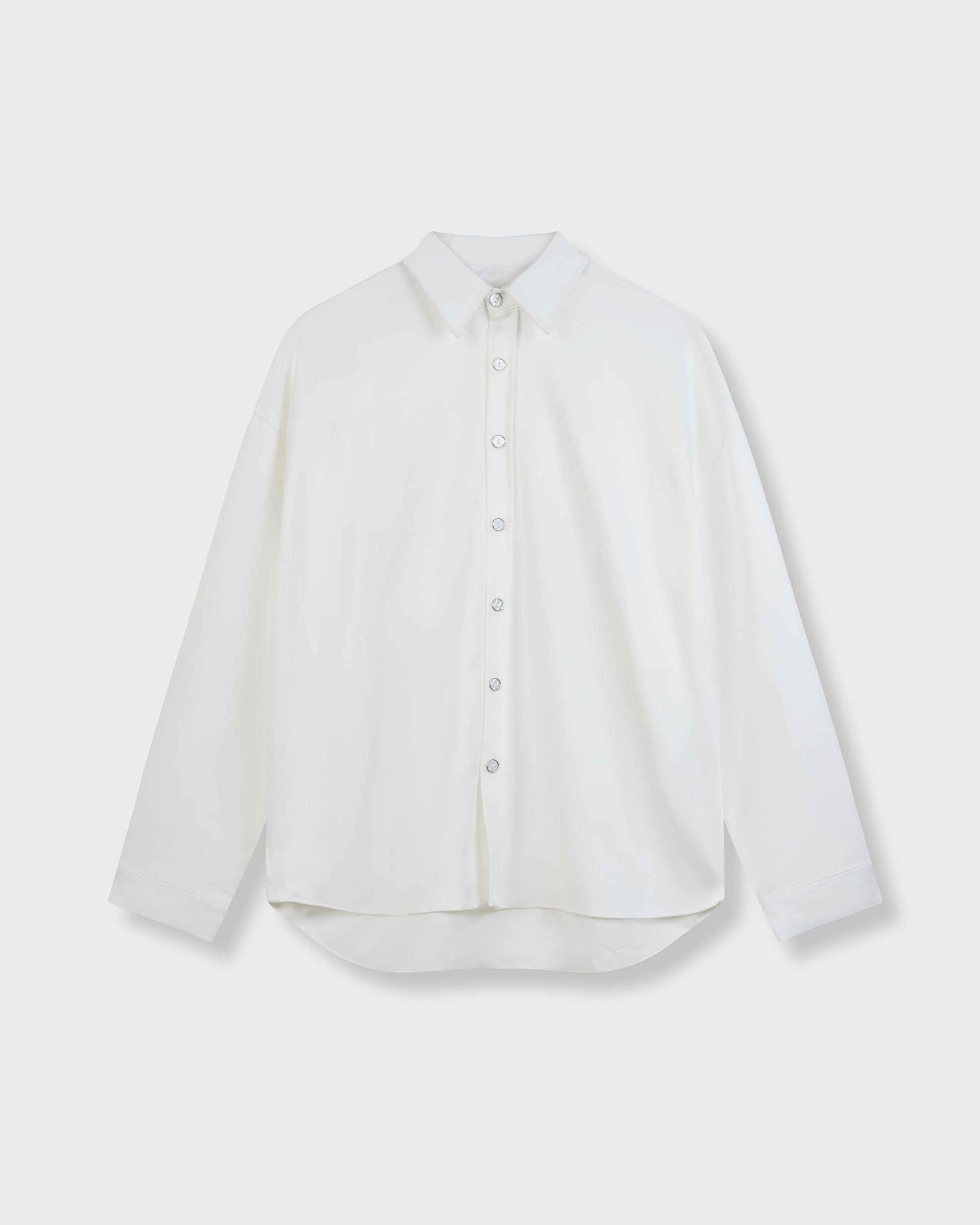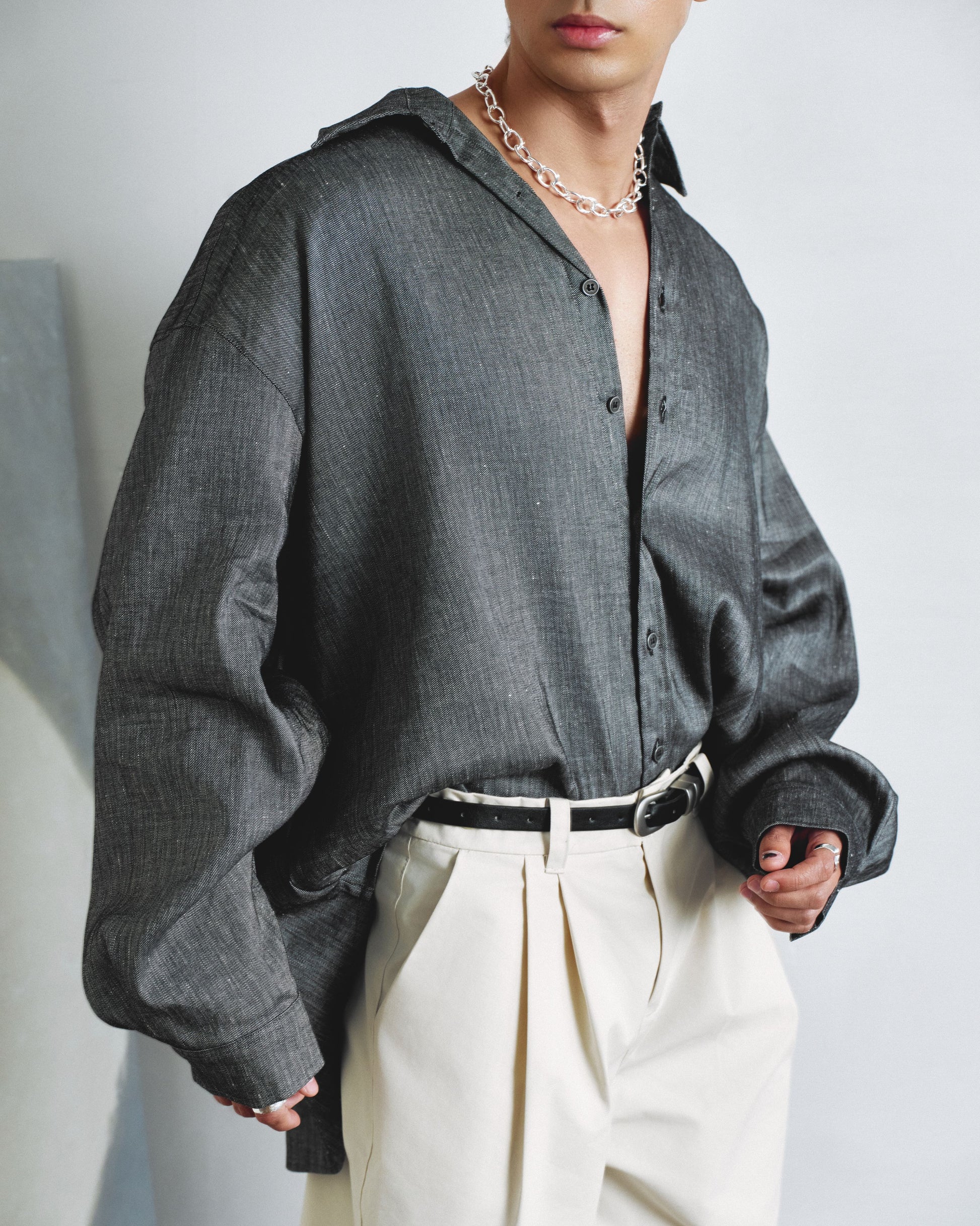 An oversized cotton shirt with a classic collar and clean button closure. Designed for a relaxed fit that balances comfort with a polished, contemporary look.